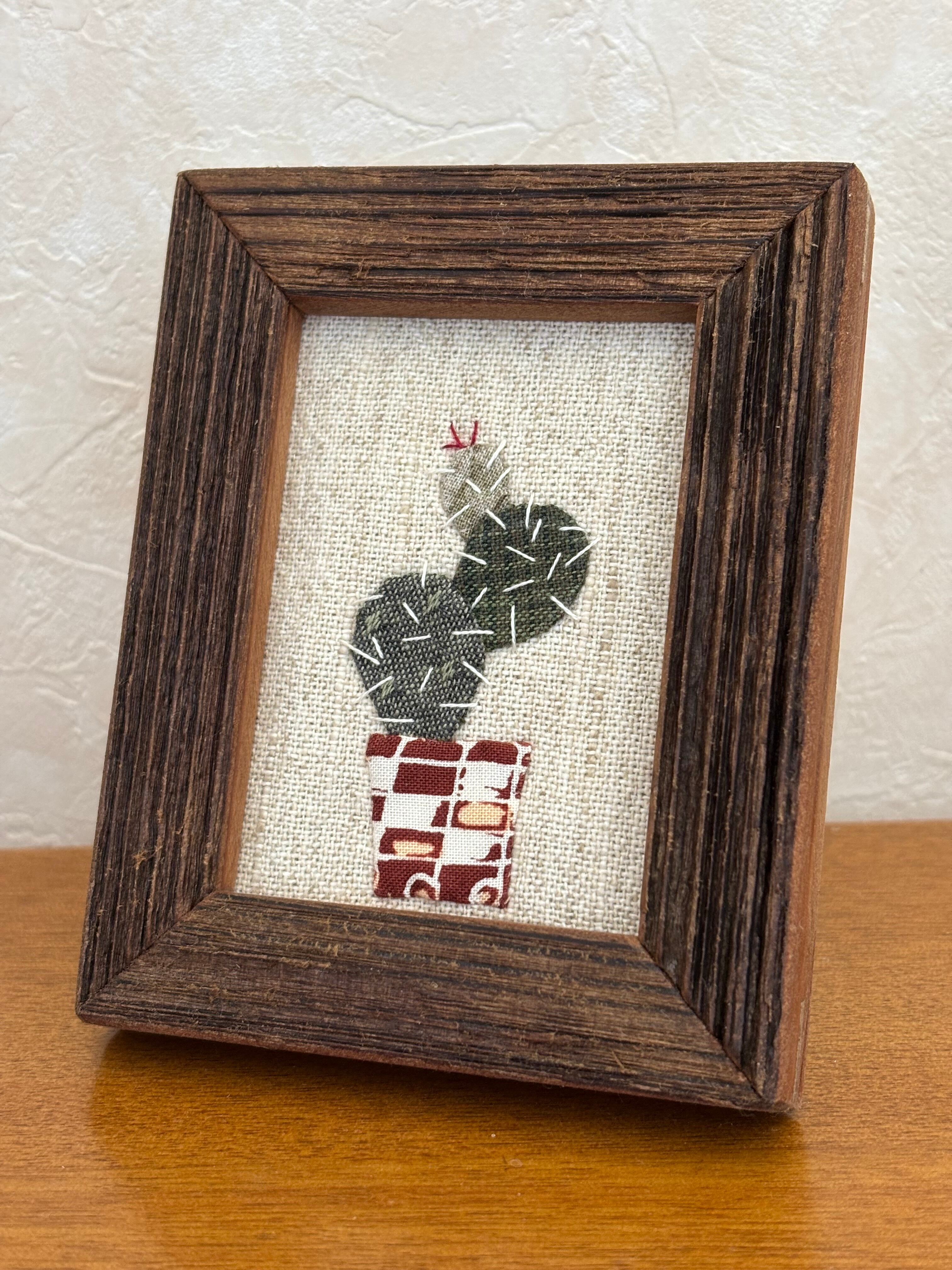 自然の魅力を感じる「サボテンのミニフレームC 」は、ハンドアップリケで丁寧に作り上げられた作品です。かわいらしいサボテンのデザインが、小さな空間に緑のアクセントを与え、お部屋を明るく彩ります。布で表現された立体感と豊かな色合いは、見る人の心を惹きつけることでしょう。贈り物や自分用のインテリアとしても大変おすすめです。